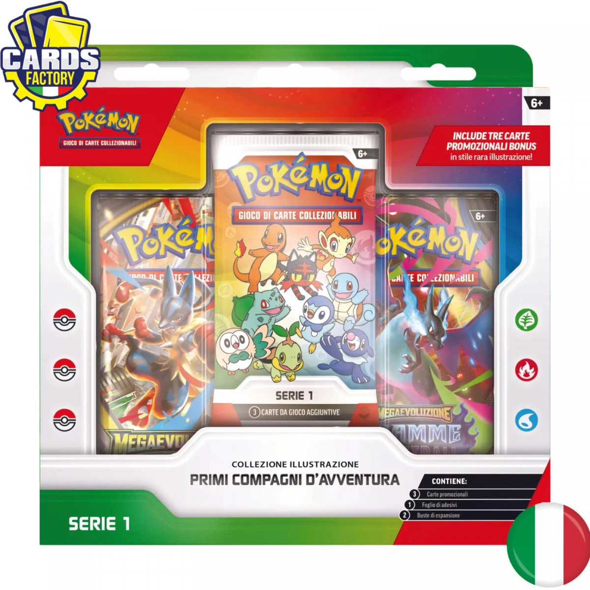 - Una busta promozionale di espansione del GCC Pokémon con tre delle possibili nove carte promozionali