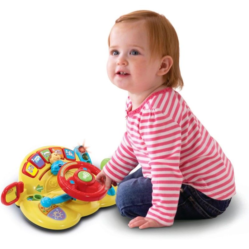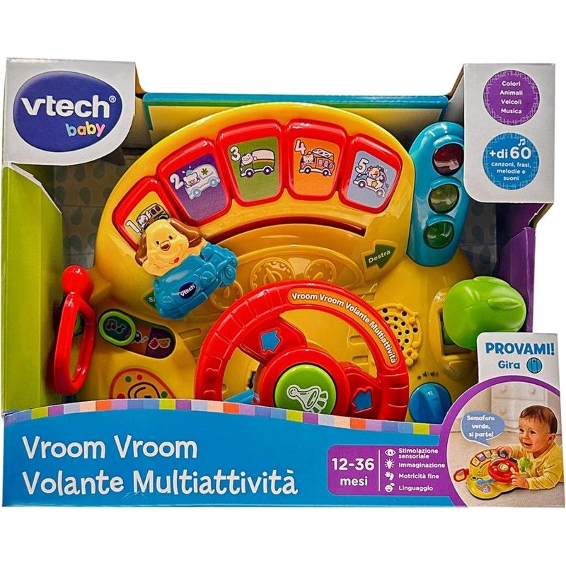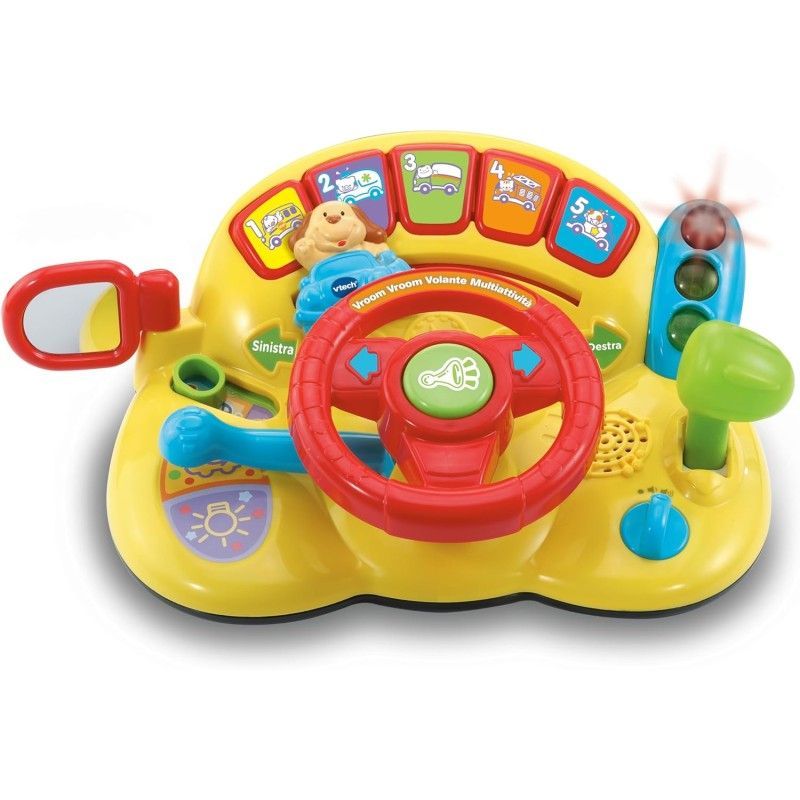 GIOCO DINAMICO: il volante interattivo muove una simpatica macchinina con cagnolino, permettendo di esplorare veicoli, animali, numeri e colori in modo divertente
