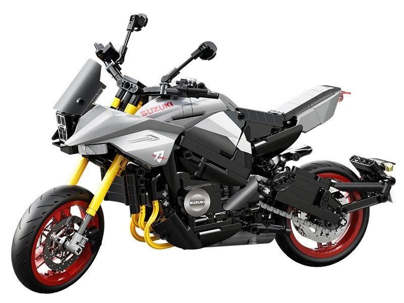 La motocicletta Suzuki Katana è una KATANA ''blade'' autorizzata da Suzuki. È basata su un'auto sportiva da strada. Le linee slanciate e decise della carrozzeria sono diventate il punto forte del design del veicolo, e gli elementi Katana sono integrati in esso. La scala è 1:6. La motocicletta SUZUKI Katana è dotata di due diversi set di supporti espositivi e piattaforme di manutenzione, consentendo ai clienti di scegliere e assemblare la motocicletta in base alle proprie preferenze. Il motore trasparente collega le ruote posteriori per riprodurre la struttura della trasmissione meccanica originale, la ruota anteriore simula una sterzata su larga scala, un controllo flessibile e un'eccellente sensazione di guida. Parti stampate esclusive: le parti esterne anteriori sono prodotte sotto la supervisione ufficiale di Suzuki e riproducono fedelmente la forma originale dell'auto. Viene fornita con targhetta: targhetta originale autorizzata.