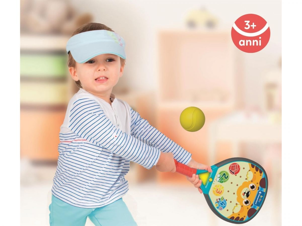 Racchetta da padel interattiva, Pallina e cordino removibile, per bambine e bambini tra 1 e 4 anni, con tante attività interattive integrate, con melodie, canzoncine ed effetti sonori.