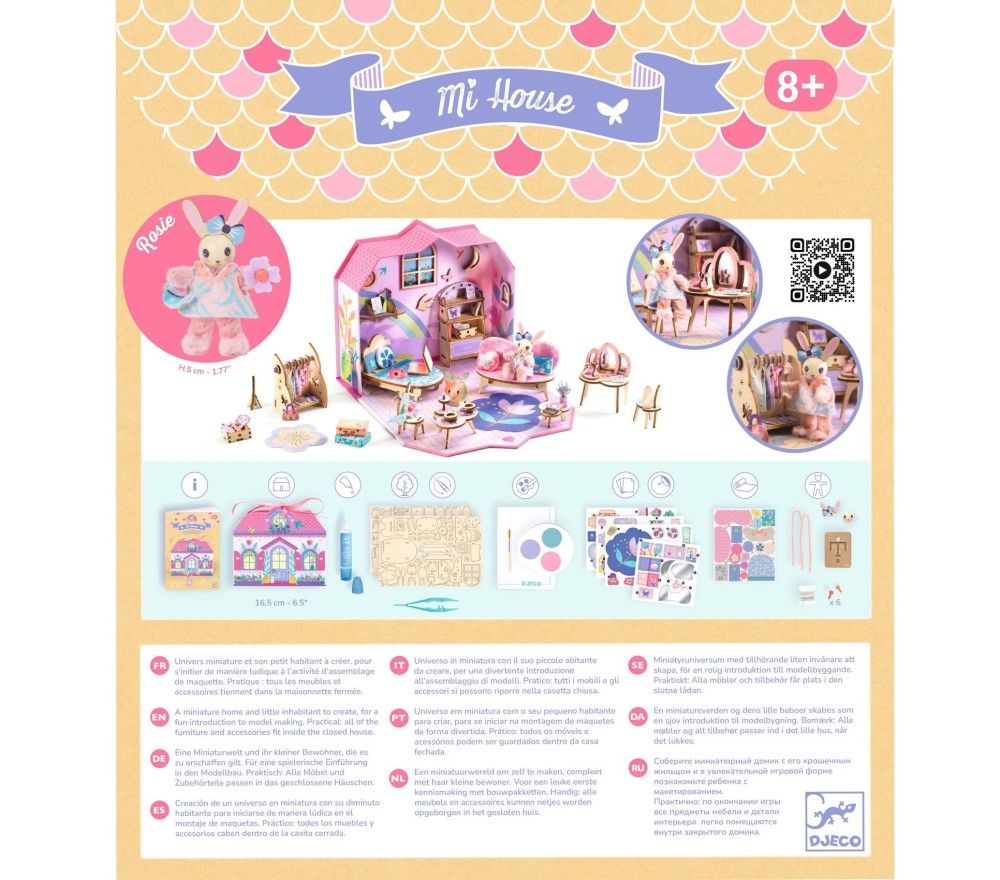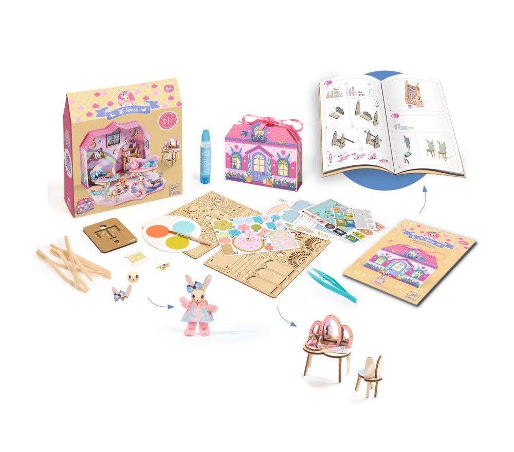 Mi House è la nuovissima linea di Djeco che avvicina i bimbi all'arte del modellismo e delle miniature. Con questo kit i bambini potranno dipingere e assemblare mobili e accessori per creare una meravigliosa casetta in miniatura.