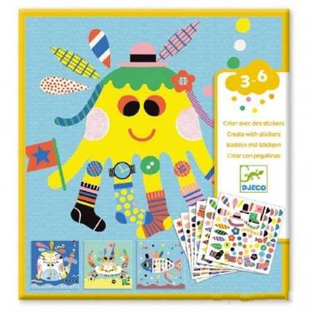 Kit artistico CREARE CON ADESIVI - ANIMALI MARINI, di Djeco.