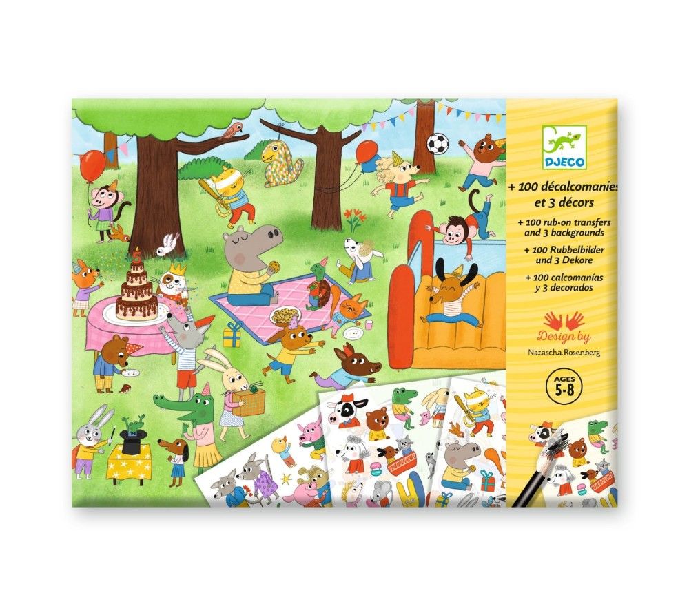 Chi non ricorda i trasferelli? Djeco li ripropone in un design moderno ed accattivante ma il procedimento è sempre lo stesso: prendi una plancia da decorare, appoggiaci sopra il foglio dei trasferelli e con una punta (di matita o di biro) sfrega l'immagine: si trasferirà magicamente sulla plancia! Oltre 100 immagini diverse da trasferire su 3 diversi sfondi illustrati. Da 4 anni in su.