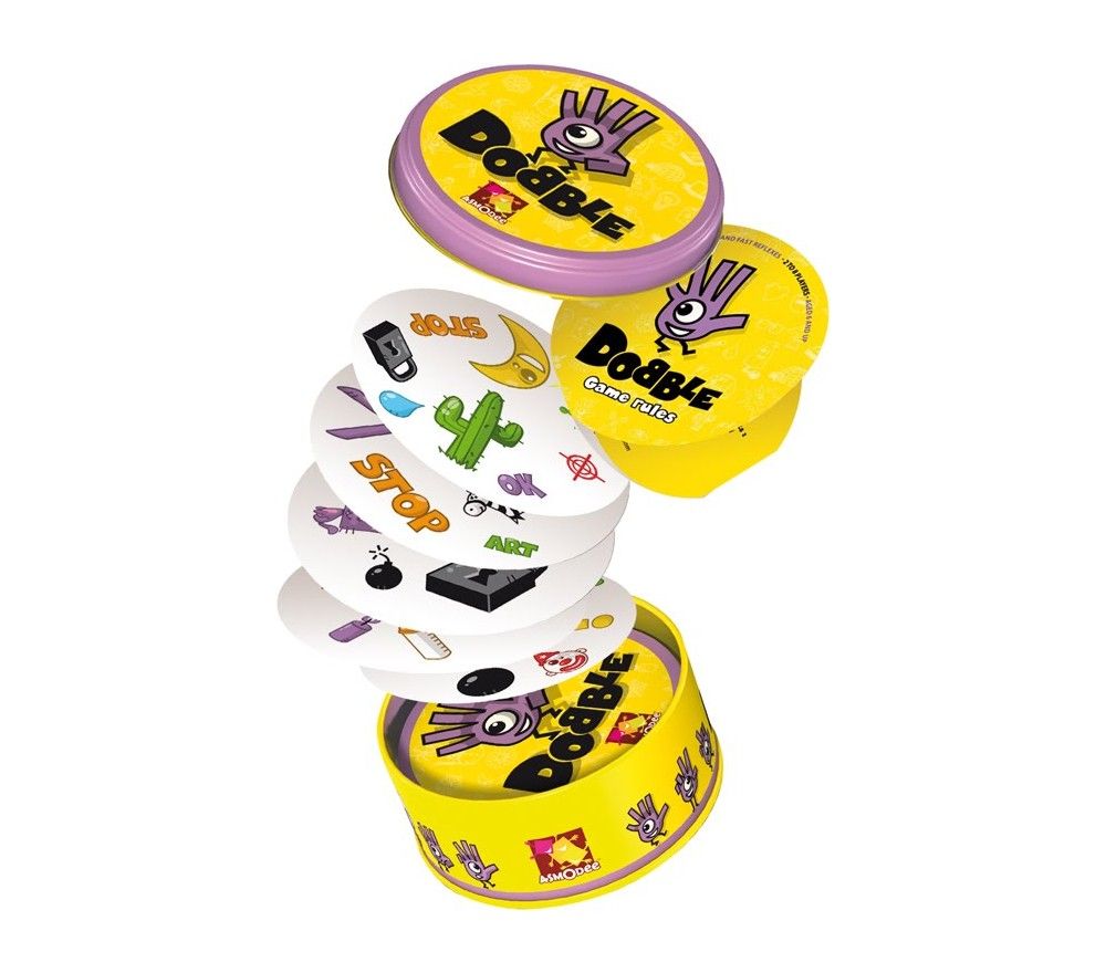 Dobble comprende 5 mini-giochi basati sulla rapidità in cui tutti i giocatori agiscono allo stesso tempo. Come si gioca: Scegliete 1 tra i 5 mini-giochi. Indipendentemente dal tipo di gioco, dovete sempre essere i più rapidi a trovare il simbolo identico tra due carte, nominarlo a voce alta e poi prendere la carta, piazzarla o scartarla a seconda delle regole del mini-gioco a cui state giocando.