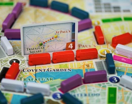 COMPONENTI DI ALTA QUALITÀ: Include una mappa dettagliata della rete dei trasporti di Londra, 68 autobus colorati, 44 carte trasporto, 20 biglietti destinazione e segnapunti, tutti realizzati con materiali di alta qualità