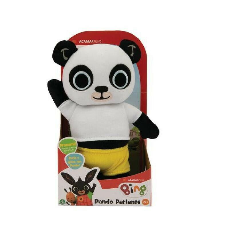 Questo peluche di Pando è totalmente fedele al cartone animato e parla con la vera voce del cartone animato: basta premere il pancino per ascoltare le frasi più celebri pronunciate da Pando nella serie tv. I calzoncini sono removibili. Altezza peluche 25 cm circa