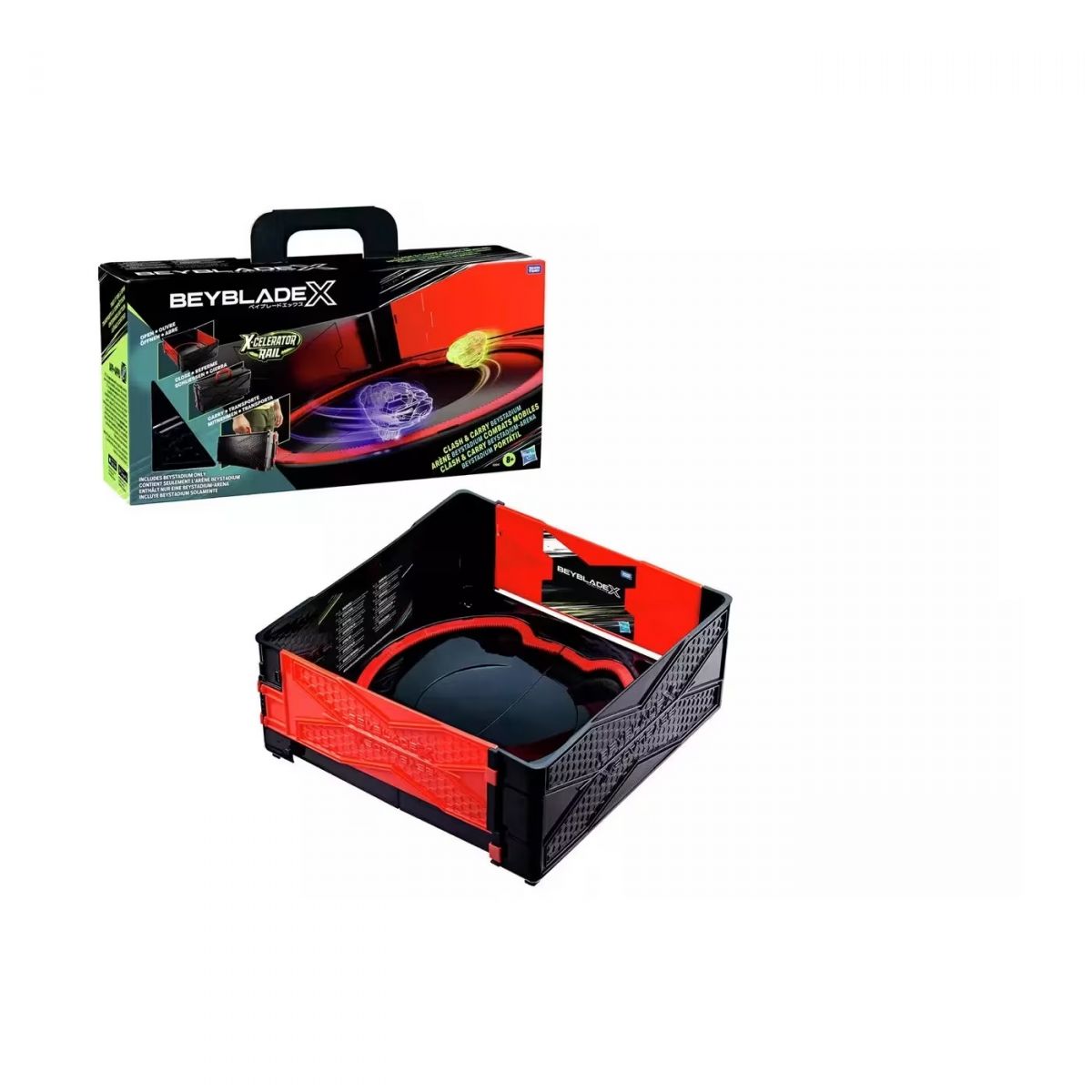 Prova Beyblade X, la nuova generazione di stadi, lanciatori e trottole Beyblade! I Blader lanciano le loro trottole in feroci scontri contro quelle dei loro avversari per segnare punti: il primo che segna 4 punti vince. Porta la battaglia ovunque tu vada con il Beyblade X Clash and Carry Beystadium! Questo stadio portatile si apre in un'arena di battaglia e si ripiega per un facile trasporto e stoccaggio. È dotato del sistema di ingranaggi X-Celerator per migliorare il tuo gioco. Quando l'ingranaggio di una trottola Beyblade X si aggancia alla guida dello stadio, può super-accelerare in un Xtreme Dash intorno allo stadio per collisioni schiaccianti. Abbina il Beystadium ai lanciatori e alle lame intercambiabili, ai cricchetti e ai pezzi delle trottole Beyblade X per creare il tuo Bey insuperabile. (Lanciatori e trottole venduti separatamente, soggetti a disponibilità.) Genitori, scansionate il codice sulle trottole Beyblade X per combattere nell'app Beyblade X! I giocattoli Beyblade con autentiche trottole in metallo pressofuso Takara Tomy sono un ottimo regalo per bambini e bambine dagli 8 anni in su. Hasbro e tutti i termini correlati sono marchi registrati di Hasbro.