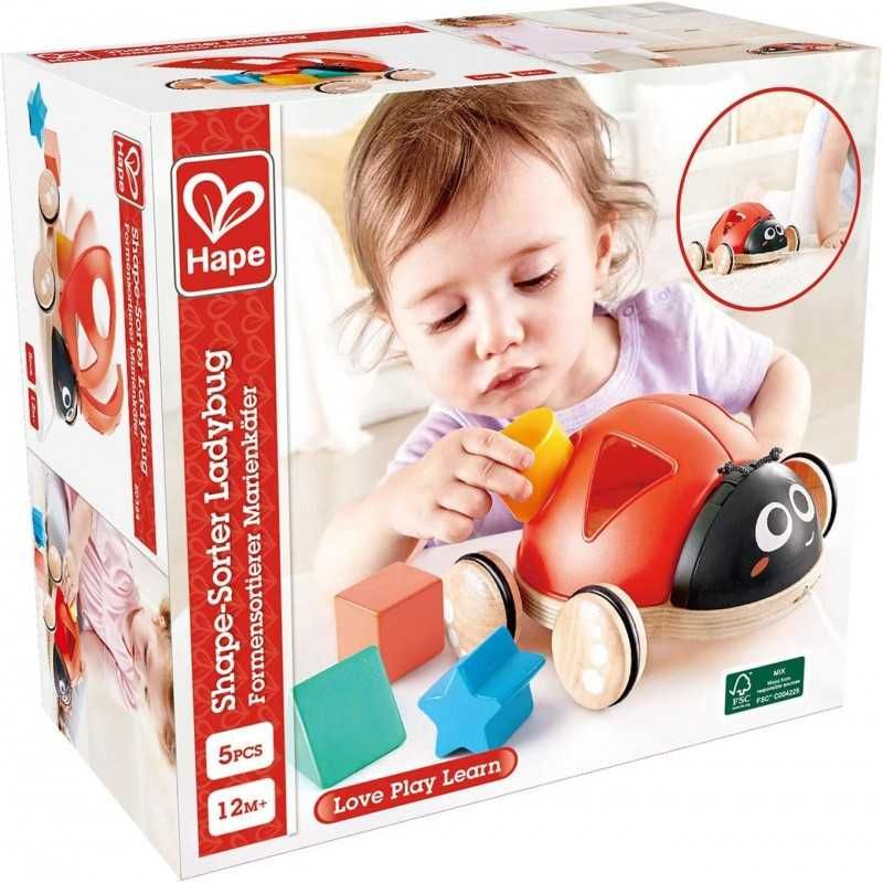 Giocattolo COCCINELLA CON FORMINE ad incastro in legno e plastica, di Hape.