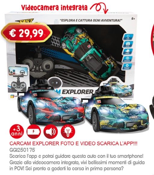 scarica l'app e potrai quidare questa auto con iltuo smartphon...grazie alla videocamera integrata vivi bellissimi momenti di guida in diretta in prima persona..
